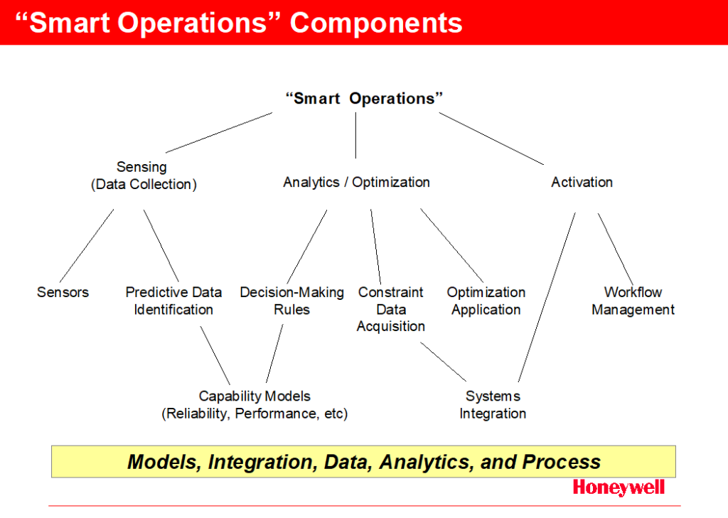 Key components, working examples, and required organizational competencies of “Smart Operations” are provided. In addition, supporting IT Strategy, Architecture, and Technologies are offered to promote thought and discussion of development and implementation strategies that will provide the technical underpinnings required to support “Smart.”