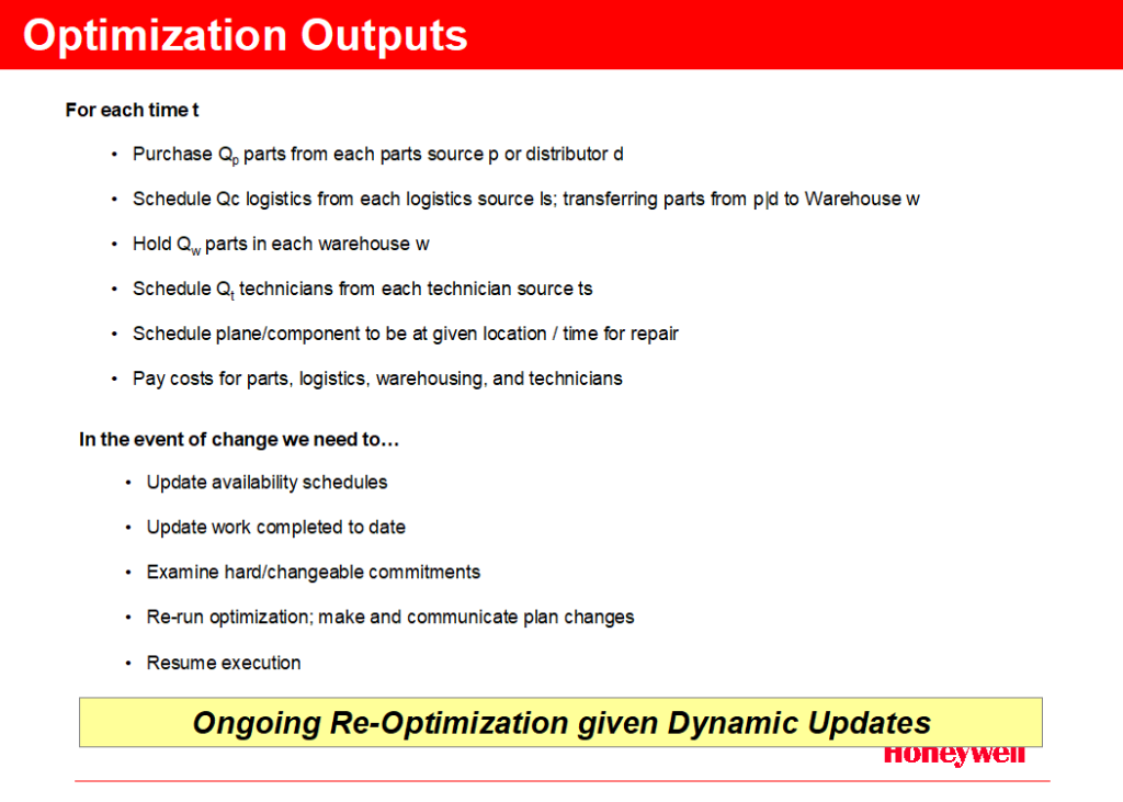 In long-running scenarios there will likely be many cases where there is a need to re-optimize around a changed input variable. The analytic and decision-making layer must re-optimize as necessary, in concert with the sensing layer collecting the changed constraint variable and determining if it is necessary to pass to the analytical layer.