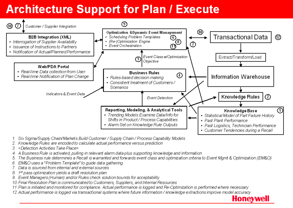 The final required capabilities are those necessary top handle “long-running” events. Events like product recalls and Service dispatches typically last far longer than a single decision. Optimization involves the continued gathering of constraints and objectives parameters, applying optimization techniques, and arriving at the best possible solution. Note that it is highly likely that for long running events optimization must be continuous to continually work to improve the overall result and deal with unforeseen changes in plan.